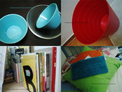 最後買了垃圾筒抱枕毛巾碗整理文件的和檔書的…顏色真是大紅大綠什麼都有…